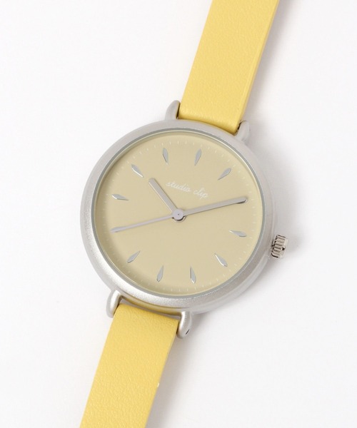 ーーー小さめなころんとしたマットフレームのラウンド型の腕時計。果物の粒や種のような文字盤を合わせてフレッシュで可愛らしい雰囲気。華奢で優しいベルトカラーがポイントです。腕元のアクセントとして楽しめます。ーーー
