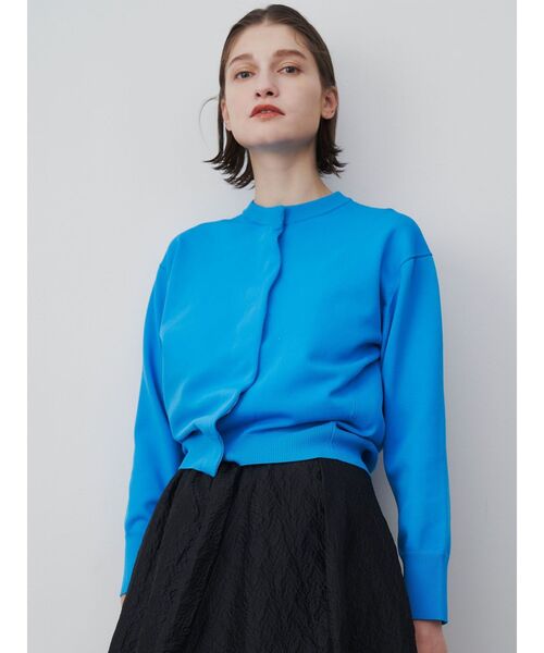 【ブルゾン風カーディガン】 通常のニットの1重編みではなく、2重編みにする事で繊細なニットとハリ感のあるブルゾンの中間的な生地感の素材。 ボタンもフラットなミニマルなドットボタンを使用する事で、ブルゾン風に仕立て、春夏ながい時期に対応可能な1枚あると便利なアイテム ・・・・・・・・・・・・・・・・・・ 透け感:なし 裏地:なし 伸縮性:あり 生地の厚さ:普通 ・・・・・・・・・・・・・・・・・・