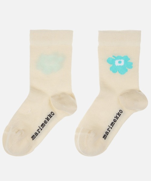 【テキスタイルデザイン:Maija Isola(マイヤ・イソラ)】 Unikko(ウニッコ):けしの花 Marimekkoを代表するUnikko(ウニッコ)柄のキッズソックス。オールシーズンで活躍する、使いやすい便利なミドル丈。足底にはブランドロゴのあしらいで、細部までこだわりを感じられるデザイン。ケシの花のモチーフのワンポイントがスタイリッシュ。さりげなく華やかな着こなしが実現するアイテムです。 《サイズ》※サイズは目安です。参考までにご覧ください。 19-21 (12-13cm) 22-24 (14-15cm)
