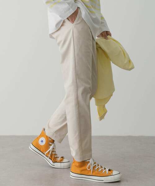 春に履きたいチノ生地で人気のテーパードシルエットを落とし込みました ・ストレッチ性がある穿きやすさ抜群の美シルエット ・細糸で織り上げたきれいめな表情 ・後ろゴムのウエスト、ヒップに程よくゆとりをもたせてノンストレスに コーディネート 普段チノパンを穿いている感覚でカジュアルなアイテムと合わせても相性良いのはもちろんのこと、きれいめなジャケットやシャツとの相性も抜群です。足元にはカジュアルなスニーカーからきれいめなローファーまで幅広くあわせていただけます。お仕事着としても。 おすすめポイント 汎用性の高さがポイント。お仕事着から普段着まで幅広く合わせていただけます。 ※商品画像は、光の当たり具合やパソコンなどの閲覧環境により、実際の色味と異なって見える場合がございます。予めご了承ください。 ※商品の色味の目安は、商品単体の画像をご参照ください。 ▼お気に入り登録のおすすめ▼ お気に入り登録商品は、マイページにて現在の価格情報や在庫状況の確認が可能です。 お買い物リストの管理に是非ご利用ください。 ----------------------------- 透け感:なし 伸縮性:ややあり 裏地:なし 光沢:なし ポケット:あり -----------------------------