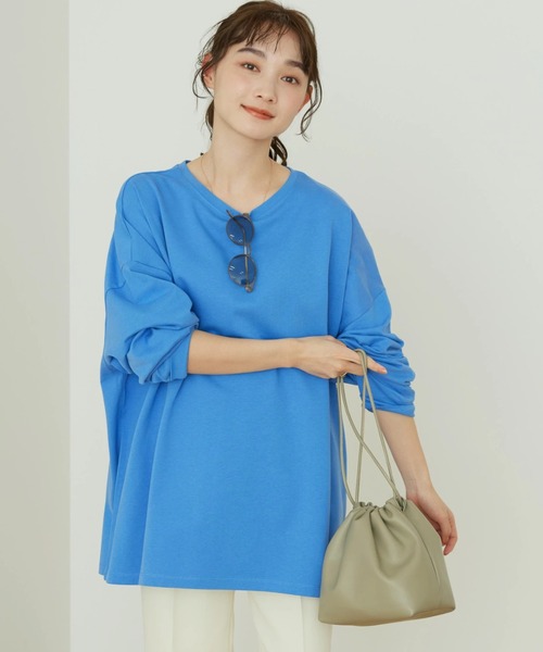 落ち感のあるドロップショルダーがゆったりとした着こなしを演出するチュニック。 ベーシックなクルーネックで、カジュアルな印象を与えます。 肌触りの良い裏毛が、やわらかい着心地を実現するのもポイント◎ すっきりとしたパンツと合わせたコーディネートがおすすめです。 透け感[無し] 裏地[無し] 伸縮性[有り] 光沢感[無し] 生地の厚さ[普通] 付属品[無し] ポケット[無し] ●製品寸法: M:バスト67cm 着丈[前]71cm[後]76cm 袖丈52cm 肩幅67cm 裾幅67cm L:バスト70cm 着丈[前]72.5cm[後]77.5cm 袖丈54cm 肩幅68.5cm 裾幅67cm 備考: