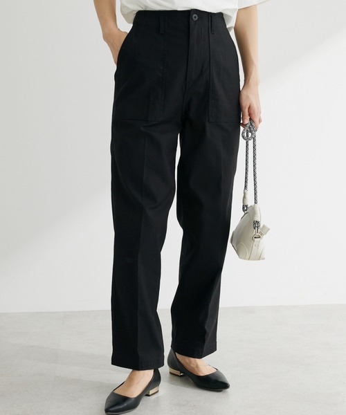 存在感のあるポケットがワークウェアライクな風合いを演出するベイカーパンツ。 センタープレスを施すことで、縦のラインを美しく魅せてくれます。 カジュアルなトップスやシャツと合わせたコーディネートがおすすめ◎ 着回しの幅が広がる、ワードローブに取り入れたいアイテムです。 透け感[無し] 裏地[無し] 伸縮性[やや有り] 光沢感[無し] 生地の厚さ[普通] 付属品[無し] ポケット[有り] 前2つ ●製品寸法: F:ウエスト[後ゴム仕様]68cm ヒップ90cm 総丈98cm 股下66cm わたり周り31cm 裾幅19cm 備考: