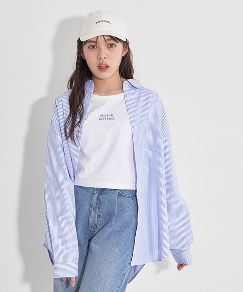 さわやかな雰囲気をただよわせるストライプ柄のシャツです。 長め丈とのバランスを見て作ったインナーTシャツをセットにしました。 重ね着することで大人っぽいこなれたスタイリングが完成。 それぞれ単品で別アイテムとコーディネートしても抜け感を楽しめるのでおすすめです。 Tシャツの刺しゅう裏に「あて布」はございません。 【透け感】やや透ける 【生地の厚さ】薄い 【伸縮性】なし※インナーTシャツのみ伸縮性有り 【ポケット】あり ※モデル画像は照明の関係により、実際よりも色味が違って見える場合があります。 #中学生 #小学生 #高学年 #子供服 #ティーン #ガールズ #通学 #学校 #おでかけ #友達 #おそろい #テーマパーク #ダンス #遊び #塾 #習い事 #韓国 #推し活 #ライブ #コンサート #ラブトキ