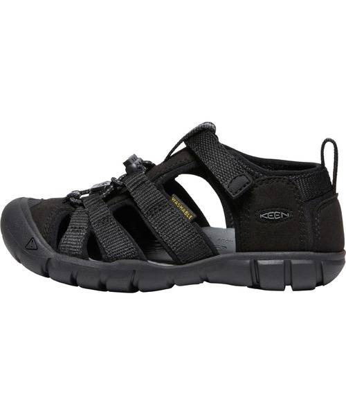 《KEEN.CNX》テクノロジー採用、軽量で携帯にも便利なハイブリッド・シューズ。普段履きはもちろんの事、トラベル時のセカンドシューズやアクティブなスポーツに適したタイプ。素材●UPPER : アッパーには水や汚れに強いポリエステル素材を使用、ウォッシャブルで手入れも容易●FOOTBED : 足裏の形状に合わせて立体成型されたEVAフットベッドが快適なクッション性を発揮●MIDSOLE : クッション性に優れ、リサイクルも可能なTPRミッドソール●OUTSOLE : プラスチックとゴムの中間の性質を持ち、リサイクルも可能、軽量性と耐久性に優れたTPRアウトソール特徴●脱ぎ履きが容易でコンフォートなフィット感、KEENならではのバンジーシューレースと、甲をホールドし脱ぎ履きを容易にする調節可能なHook & Loopストラップを採用●動いても動いても快適な速乾性ライニング●解剖学的にデザインされた中足部がナチュラルなフィットを約束お手入れ方法表面についた泥や砂などは事前に落とし水250mlに対して大さじ1杯の重曹を溶かした水で洗ってください。落ちにくい汚れは2-3時間ほどつけ置きしてこすり洗いしてください。タオルを使ってしっかり拭き風通しの良いところで必ず陰干しをしてください。ソールの部分汚れには消しゴムも有効ですサンダル / 男の子 / 女の子 / 子供 / 靴 / キッズ / シューズ / キャンプ /アウトドア / 水遊び / つま先保護 / KIDSSEACAMP II CNX / 1027412 ( BLACK/GREY)