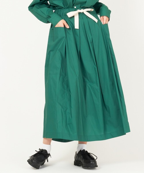 ○素材 コットン100%のコンパクト糸を使用し、高密度に織り上げたポプリン。 目の詰まったハリ腰感のある風合いが特徴です。 丁寧な加工を施し、しなやかさと弾力のある表情に仕上がっています。 ○デザインたっぷりとったボリュームとランダムに入ったタックが人気のスカート。 ウエストはゴム仕様に加えフィット感を高めるドローストリング。 足首まである丈が大人な印象に。 左右のビックポケットがアクセントになるスカートです。 ・Aラインシルエット ・ウエストはゴム&紐で調節可能 ・サイドについたビッグポケット ・ウエスト部分にギャザーとタック 【ZOZO選択肢名→メーカーカラー名】ライトグレー→2.LGRYグリーン→3.GRN■BRAND CONCEPT2007 年にスタートした nicholson&nicholson(ニコルソン&ニコルソン)。色褪せないモノつくりをテーマに着る人に寄り添う、とっておきの普段着を提案。シンプルな中にもアクセントのあるデザインが魅力のブランドです。■IDENTITYトレンドのファッションよりも、自分の中のお気に入りを見つけたい。お気に入りの服は大切に長く着たいし、自分らしい着こなしをしたい。長く着る服だからこそ、素材や着心地にこだわりたい。大人の女性はそう思うのではないでしょうか。nicholson and nicholsonは made in Japan にこだわり、着る人に寄り添う、とっておきの普段着を提案します。私たちが made in Japan にこだわる理由、それはなんと言っても丁寧なモノつくりの良さ。デザインの段階からお客様のお手元にとどくまで、その「丁寧さ」大切にし、商品ひとつひとつに想いを込めて作っています。私たちの作る服が、あなたにとって「とっておきの普段着」なりますように。----------------------------------------------------------------------【ATTENTION ご注意ください】※掲載画像の商品の色味は、屋外や屋内の光の照射や角度、お手持ちのスマートフォン、PCの画面設定により実物と色味が異なる場合がございます。またサンプルを使用して撮影をしている場合表示のサイズ感と実物は若干異なる場合もございますので、予めご了承ください。※着用、お取り扱いの際は、商品についている品質表示とアテンションタグを必ずご確認下さい。 --------------------------------------------------------------------------------------------------------------------------------------------●気になるアイテムはお気に入り登録がおすすめ!♥マークをタップで完売商品の再入荷やラスト1点の通知、セール開始をお知らせいたします! 【お知らせ】ページでも通知が確認できます。●お気に入りショップに追加GOOD DEALをお気に入りショップに追加をお願いします。新商品や再入荷、クーポン情報やショップのおすすめトピックスなど、いち早く情報を受け取ることができます。また、ZOZOセール中にはお気に入りショップリストに追加され、セール情報をいち早くチェックできます!----------------------------------------------------------------------