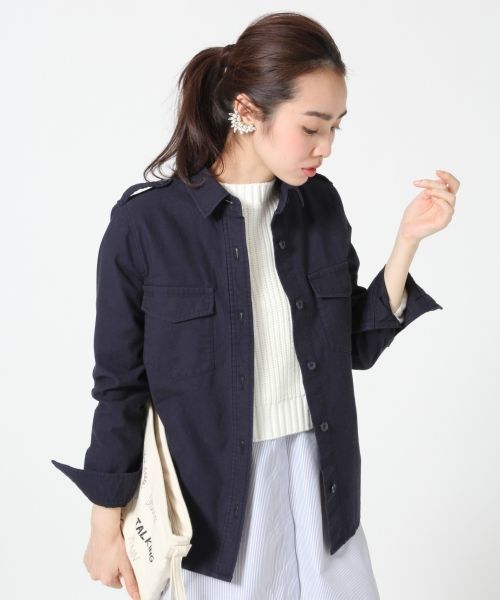 さっと羽織ってカーディガンや薄手アウター代わりに使えそうな ミリタリーシャツが新着。 すとんとした細身シルエットは、ボタンをとめた時もすっきり見えます。 ミリタリー人気が高まってきているいま、 シャツとしてもアウター代わりにも使えそうなこんなアイテムは 登場回数が多くなりそうなのでオススメです。 店舗やカスタマーサービスにてお問い合わせの際は、 全国のapart by lowrys 各店舗まで下記の品番をお申し付け下さい。 品名:BサテンミリタリーシャツL/S 品番:558136