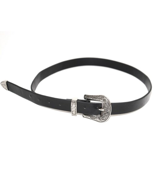 サイズFREE 全長109cm 幅2.3cm (COLOR)1color ・BLACK LEATHER バックル,金具:SILVER (CONDITION RANK) SS:新品アイテム (DETAIL) ・サイズ調整が可能 ・素材:合成皮革 商品コード:2201200301913