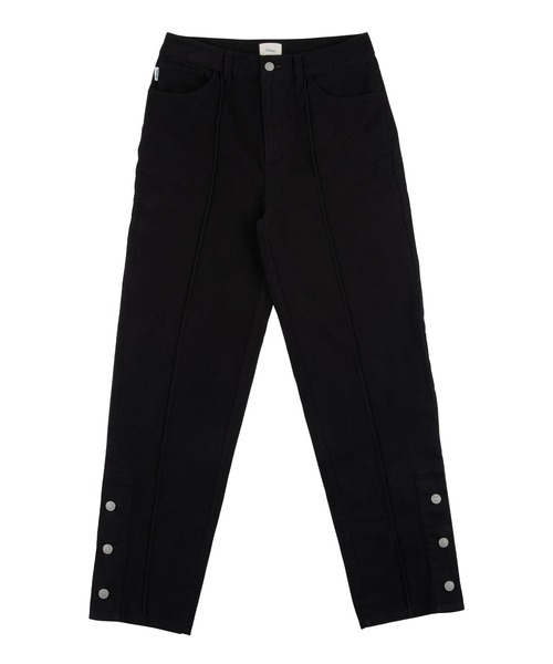 ■デザインポイント・シルエット ・ヘムボタンがアクセントになったトラックパンツ。 ・ボタンの開閉でスタイリングに合ったシルエットに調節が可能。 ・センタータックが施されており脚のラインをより良くみせてくれます。 ・同生地を使用したコットンツイルカラービッグジャケットとセットアップでの着用もおすすめです。 ■素材・生地感 ・シワになりにくく、型崩れのしにくいコットンツイル生地を使用。 ・肌触りの良い綿100%素材。 ・厚手なのに柔らかな生地感が特徴。