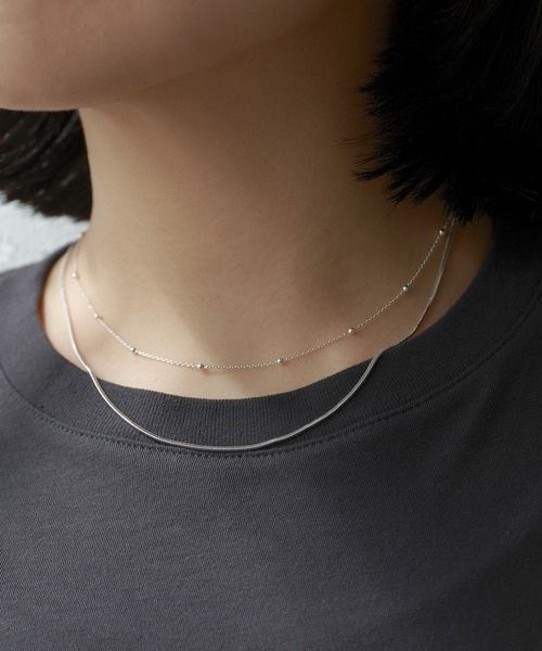 【2023SS】 コーディネートに今っぽさをプラスできる2連ネックレス ■2種類のネックレスを重ね付けしたようなデザインのレイヤードネックレス。 ■ボールパーツをあしらった表情ある華奢なチェーンと、繊細なスネークチェーンが2連になったデザイン。 ■長さもそれぞれ異なり、よりレイヤードしているような雰囲気を楽しめるのがポイント。 ■シンプルながらも程よく主張のあるシルエットがスタイリングのアクセントに。 ■合わせるトップスを選ばず、デイリーユースにもぴったりなアクセサリー。 ― THE PAUSE(ザ ポーズ) ― 流行を自分らしい発想で切り取ってコーディネートを遊ぶ。 色のグラデーション、ヴィンテージ感漂うワークアイテム・・・ ギャラリーのようなクローゼットの中から 組み合わせをデザインするようにファッションを楽しむ。 そんな、自由なライフスタイルをもつ大人の女性にむけて 新しい感覚のカジュアルスタイルを提案します。 ※画像の商品はサンプルです。実際の商品と仕様、色味が若干異なる場合があります。 また、パソコンやスマートフォンのモニター環境などにより、色味が違って見える場合がございます。予めご了承ください。 ※店頭及び屋外での撮影画像は、光の当たり具合で色味が違って見える場合があります。商品の色味は、スタジオ撮影の画像をご参照ください。 ※入荷状況によりお届け予定が前後する場合があります。予めご了承ください。 【気になるアイテムは、「お気に入り」登録を】 ♡マークをクリックしておくことで、スムーズにお買い物が楽しめます。 ・ラスト一点のお知らせ ・再入荷のお知らせ ・SALEのご案内