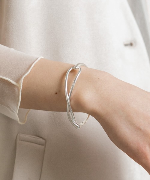 【こなれ感たっぷりのツイストバングル】 ねじりを加えたデザインが印象的なバングル。 派手ではないものの、程よい存在感を放つデザインなので 手元の印象をこなれた雰囲気に見せてくれるアイテムです。 ※輪の部分を軽く押して開閉してください。過度な力で開閉すると破損の原因になります。 ※開閉時に肌を挟まない様ご注意ください。 ※メッキ製品は変色してしまいがちです。こまめなお手入れで防止してください。アレルギー体質の方や体調が低下している方など、かぶれることがありますので十分にご注意ください。 ※アクセサリーは壊れやすいものです。取扱いにご注意ください。 ※その他お取り扱いに関しましては、商品に付属のアテンションタグをご覧ください。 ※商品画像は、光の当たり具合やパソコンなどの閲覧環境により、実際の色味と異なって見える場合がございます。予めご了承ください。 ※商品の色味の目安は、商品単体の画像をご参照ください。