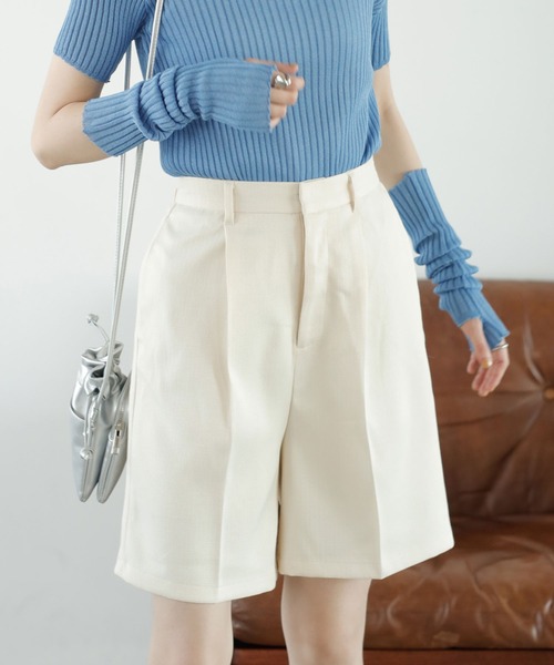一枚でぐっと今っぽい! コーデの幅が広がるショートパンツ 〇センターピンタックのラインが脚をキレイ見せ 〇短すぎない丈感で様々なトップスと好相性 〇ウエストフロント部分はすっきりきれい見え、後ゴム仕様でラクなはき心地 〇セットアップが楽しめる ■デザイン 今季トレンドのショートパンツ。 センターピンタックが縦のラインを強調し、すっきりキレイに見せてくれます。 シンプルなデザインでスタイリングを選ばないアイテムです。 ウエストインしてキマるよう、ウエストフロント部分はすっきりキレイに見えるデザインに。 同素材のベストと合わせて、セットアップも楽しめます。 ■素材 上品なリネンライク素材 柔らかで肌触りがよく、シワになりにくいのも◎ …………………… 透け感:アイボリーのみややあり 厚さ:普通 伸縮性:なし 裏地:あり …………………… ■コーディネート 短丈トップスともロング丈トップスとも好相性。 ブラウスやシャツと合わせてキレイめの着こなしはもちろん、Tシャツと合わせてラフに着こなしてもカジュアルになりすぎずオススメです。 ★セットアップ可能な同素材アイテムもございます★ (品番:207819) リネンライクスラブプルオーバーベスト ●裏地付 ●ポケット有 ●ウエスト後ゴム使い ●ファスナー前 洗濯:手洗い可 -------------------------------------------------------------- ※サイズ寸法は実際の寸法と多少の誤差がある場合が ございます。 ※ご覧いただいているPC/WEB環境や撮影環境により、 多少色味が異なって見える場合がございます。 【お買い物をよりお楽しみいただく為に】 ▼商品のお気に入り登録をおすすめします♪ 『♡をクリック!』 完売カラーの再入荷やラスト1点の追加、 セールの際の通知を受ける事ができます。 ブランドのお気に入り登録もご一緒にお願い致します。 --------------------------------------------------------------