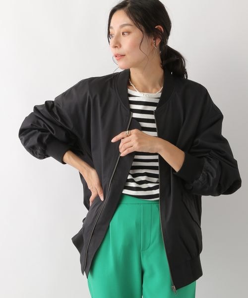 ーーー 春らしく軽めに着られるMA-1ブルゾン ーーー 【デザイン】 中綿をなくして春らしい印象に仕上げたブルゾンです。 しっかりとした素材でお作りしているので着用感感じられる1枚に。 肌寒さを感じる時期でもインナーに厚手のトップスを着込めるゆったりシルエットです。 【スタイリング】 ・レース系のスカートや花柄のワンピース、ジャンスカなど女性らしいアイテムと合わせる事でハードになりすぎず、甘辛MIXで着て頂けます。 ・今年らしいカーブデニムを合わせるとカジュアルな印象でもお使い頂けます。