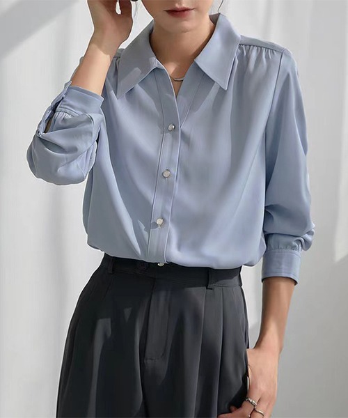 ■POINT・シンプルでキレイめのブラウス。上品なカラーは休日から職場まで、様々なシーンで着用できる♪・カジュアルからフォーマルまで幅広く活躍!パンツと合わせてオフィスカジュアルに、ロングスカートと合わせて綺麗めコーデに◎アクセサリー等で雰囲気を変えてお休みの日も着回しができる!・程よく開いた襟元でスッキリした印象に◎堅苦しすぎず、お洒落な雰囲気で着こなせます♪■DETAIL生地の厚み:普通透け感:なし裏地:なし伸縮性:若干あり■CHECK※スタッフが実際に平置きにて採寸したものですので若干の誤差がある場合がございます。※お使いのモニターや端末により、質感色合いが実際の商品と異なって見える場合がございます。※生産時期により仕様・色味が異なる場合があります。■CAMPAIGN※「商品のお気に入り登録」で再入荷通知や、ラスト1点の通知、セール通知も受け取ることができます。※「ブランドのお気に入り登録」で新商品や再入荷など、お得な情報を受け取ることができます!