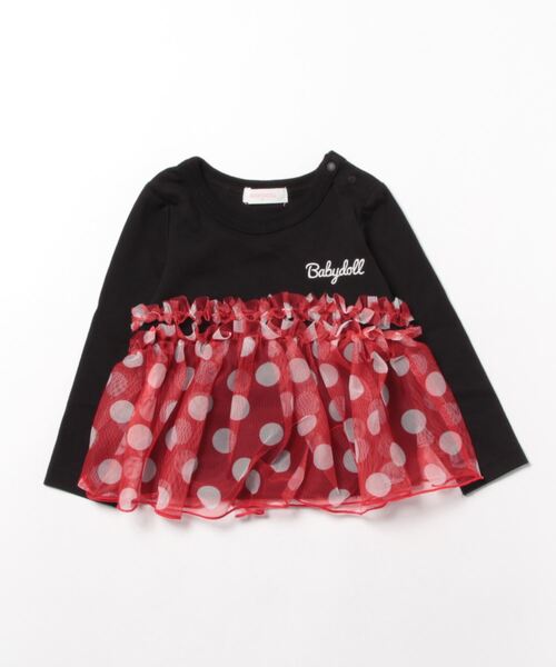 ふわっとしたシルエットがかわいいドッキングロンT♪ 女の子らしさをUPさせるチュールがアクセントに↑↑ シンプルなボトムスと合わせても存在感抜群☆ ■仕様 天竺素材 生地の厚さ:普通(当社比較) チュール 縫い付け部はコールゴム有り 80cm 90cm左肩にスナップボタン付 左胸:刺しゅう 背中:プリント バインダー衿 ■おすすめ季節 春、夏、秋、冬のロングシーズンで着回しただけます。 ■おすすめシーン 保育園・幼稚園・学校への通園通学、お散歩などの日常のシーン、 学校行事の遠足、ピクニックなど動きやすさ重視の時にも♪ 休日の遊びや遊園地などへのお出かけ、バーベキュー(BBQ)などのイベントやレジャーでみんなと差をつけたいときも♪ 旅行や春休み、夏休み、連休などの特別な日にも♪ 毎日ベビドコーデを楽しんじゃお★ ■おすすめ着用年齢 ベビー:未就学児、キッズ:年少、年中、年長、小学生1年生、2年生、3年生、4年生、5年生、6年生、中学生、などベビーからキッズまで幅広く展開★ サイズ展開は80㎝、90cm、100cm、110cm、120cm、130cm、140cm、150cm、160cmまでの幅広いサイズ展開をご用意♪ ◆BABYDOLLとは◆ カラフルPOPなデザインに王冠マークが特徴の子ども服ブランド「BABYDOLL(ベビードール)」を中心にキャラクターコラボアイテムも充実した、大人から子どもまで家族みんなでおそろいできるファミリー向けファッションブランドです。 子ども達の日常・遊びにフィットするストリート・スポーツMIXスタイル「BBDL(ビー・ビー・ディー・エル)」やジュニア向けサイズのアイテムも展開中★ 日常使いしやすいカジュアル・シンプル・スポーティなデイリーウェアやお出かけにも使えるおしゃれなアイテム、お手頃価格なプチプラアイテムも充実!トレンドの韓国風ファッションの着こなしも出来ちゃいます★ ベビー・キッズなどの子供服・子供用品から、レディースライン、ユニセックスなどの大人向けアイテムまで揃い、 家族や友達や兄弟、カップルで双子コーデやペアルックなど女の子、男の子問わずみんなでオシャレを楽しめるショップです♪ ■サイズ(単位:cm) 80cm 着丈:32 胸回り:52 肩幅:22 裄丈:39 90cm 着丈:35 胸回り:56 肩幅:23 裄丈:42 100cm 着丈:38 胸回り:60 肩幅:24 裄丈:46 110cm 着丈:40 胸回り:62 肩幅:25 裄丈:51 120cm 着丈:43 胸回り:66 肩幅:27 裄丈:55 130cm 着丈:46 胸回り:70 肩幅:29 裄丈:60 140cm 着丈:49 胸回り:74 肩幅:31 裄丈:65 ※商品により多少の誤差あり。 【お気に入り登録でお得にお買い物】 ・「商品のお気に入り登録」でセール通知、再入荷通知や、ラスト1点の通知を受け取ることができます。 ・「ブランドのお気に入り登録」で新商品や再入荷、セール情報など、お得な情報を受け取ることができます。