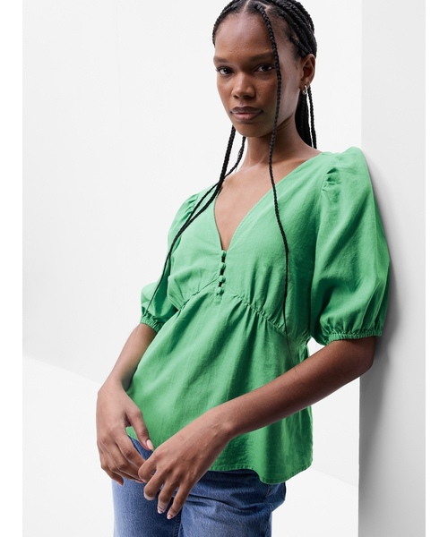 肌触り柔らかなリネン混紡のポップオーバートップス Vネック 半袖パフスリーブ ボタン付きプラケットフロント ペプラム裾 *商品タグに記載の価格とサイト上の販売価格が異なる事があります。 【Gap ギャップ】1969年にアメリカ・サンフランシスコで創業以来、世界的なカジュアルファッションブランドとして、常にモダンなアメリカンカジュアルを提案し続けています。 【Local Hero&Gap の取り組み】Local Hero & Gap プロジェクトとは、全国にある Gap ストアの近隣で活躍している人やお店(Local Hero)に対して Gap が提携して応援する事で Local Hero の認知度向上や地域の発展に貢献していくプロジェクトです。