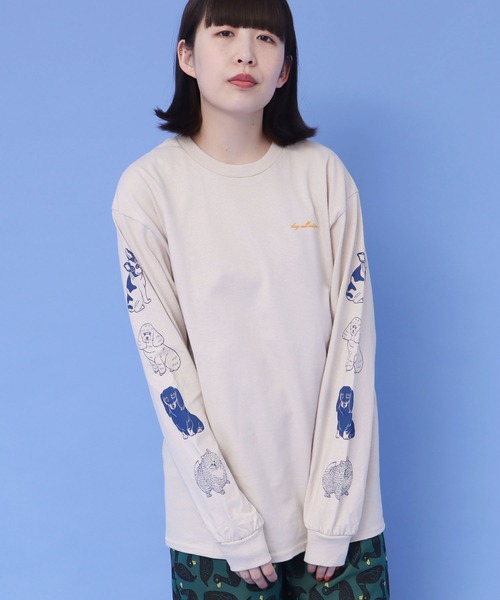 大人気だったdog all starsが再び登場です! didiziziならではのタッチで描いた”dog all stars ” なんともたまらない表情のわんこ達を、大胆に袖部分にプリントでONしました。 胸元のフロッキープリントのロゴもアクセントに。 ゆったりとした大きめのシルエットなのでメンズライクに着こなすバランスもおすすめ。 KA381A この製品を洗濯する際には 多少縮む場合がありますの で、できるだけ手洗いをし て形を整えてから日陰で平 干ししてください。 タンブラー乾燥はお避けく ださい。 塩素系漂白剤はご使用にな らないでください。 KA738 ATTENTION(プリント製品) この製品に使用されているプ リントは、使用を繰り返すこ とにより、もまれたり擦られ たりすると、顔料が徐々に白 化しむら状の部分が現れます。 使用により他の衣類等に色移 りする恐れもありますのでご 注意ください。また、一枚一 枚の色の出方、風合い等も微 妙に違いますが、他の製品で は味わえない雰囲気をお楽し み下さい。 ※光の関係で実物の商品の色味とは若干異なる場合がございます。あらかじめご了承ください。 ※商品はサンプルです。実際の商品と仕様、加工、サイズが若干異なる場合がございます。 ※取り扱いの注意については取り扱い表示をよくご確認の上、着用をお願いいたします。 didizizi(ディディジジ) CONCEPT 2つの対になったソックスから生み出される 楽しくて心躍る素敵な世界。 小物を中心に展開しているブランド。 didiziziというブランド名の由来は、 「di:2つの、zi(zingy):おもしろくてたまらない。すごく魅力的な。」 という英語の造語。