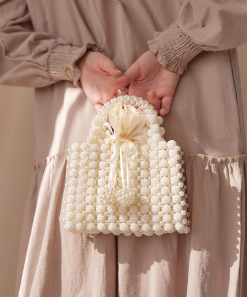上品で美しいお呼ばれパールバッグ 〖Design〗 ・華奢で繊細なパールは、かっちりとして丈夫なつくり ・ベリービーズがたくさん詰まっていてかわいい ・光沢感が上品な巾着ポーチ付き ・カジュアルもガーリーもキレイめにも◎ 〖Styling〗 コンパクトなパールのハンドバッグ。 アクセサリーのように使用していただくのが◎ 上品なパールが、パーティードレスにも馴染むので 結婚式やパーティー、成人式、お食事会などのオケージョンシーンにもおすすめ。 もちろん普段使いとしても大活躍間違いなし! シンプルなコーデやカジュアルスタイルにもなじみます。 ---------------------------------------------- 透け感: ややあり 裏地: ポーチ付き 伸縮性: なし 光沢感: あり ---------------------------------------------- ●商品のお気に入り登録 ♡をクリック! 完売カラーの再入荷や残り1点の通知、お得なタイムセール通知も受け取ることができます。 ●ブランドのお気に入り 登録新商品や再入荷、セール、クーポン配布などお得な情報をいち早くお知らせします。 ぜひご登録下さい! ※画像の商品はサンプルです。 実際の商品と仕様・加工・サイズが若干異なる場合がございます。予めご了承くださいませ。 ※撮影場所やお使いのモニター環境により若干お色味が異なる場合がございます。 ※製品によっては染料の特性上、湿った状態や汗をかいた状態での長時間の放置、または摩擦により、他のものへ色移りする恐れがありますので、着用時にはご注意下さい。 ※風通しがよく、湿気の少ない日の当たらない場所で保管して下さい。 ※また製品加工上、お手元に届く際に匂いが生じる場合がありますが、 ご使用を続けていく事により匂いは軽減されます。 ※ご注文いただいた予約商品のお届け時期の確認は、注文履歴ページより行えます。