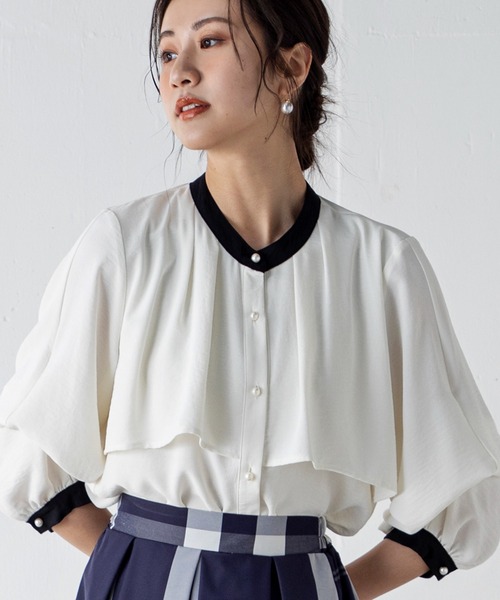 【2WAY】長さ調節可能な袖で幅広い着こなしへ! ◆ point シックなコーディネートを導くブラウス。 フロントにラッフルデザインを施し、襟は配色のバンドカラーですっきりと魅せ、こなれ感のあるきれいめスタイルが完成。 袖の内側のボタンで袖丈を調節でき、春から夏まで着回せるアイテムです。 ◆ fabric シワになりにくく落ち感のある生地 透け感:白はややあり 厚さ:薄め 伸縮性:なし 裏地:なし ポケット:なし 洗濯方法:40℃限度の洗濯機 ◆ coordinateスキニーにも柄のあるスカートにも幅広く着回しが効きます◎キャップを合わせてカジュアルダウンするのもおすすめです。 ◆ model size■オフホワイト | MODEL(メイン画像):身長 172cm / B 83cm / W59cm / H87cm ■ブラック | MODEL(メイン画像):身長 172cm / B 83cm / W59cm / H87cm ■ベージュ | MODEL(メイン画像):身長 172cm / B 83cm / W59cm / H87cm ■ミックス | MODEL(メイン画像):身長 172cm / B 83cm / W59cm / H87cm ◆ staff voiceボタンがすべてパールなので上品な着こなしに!七分袖バージョンできるとドレープが出てより華やかに、長袖バージョンだとオフィスにも着ていける落ち着いた印象になり、着回し力も抜群です! #バンドカラー #パール #きれいめコーデ≪お気に入り登録≫再入荷や、セール情報などお知らせを受け取ることができます!≪Instagram:@millioncarats_official≫新作やセールなど最新情報をチェック!