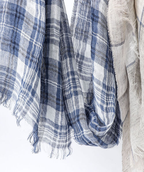_軽やかなリネンの質感が心地良いチェック柄ストール_ ゆったりとした幅でリラックス感が程よく演出できる大判ストールで使うほどに馴染む風合いも魅力。リネンは適度なハリとコシがあり、サラッとした爽やかな涼感があります。熱の伝わるスピードも早く、外に熱を発散してくれるため、真夏でも涼しく快適に身につけることができます。 吸水性は綿の4倍あり、速乾性も優れているので水分や汗を素早く吸い取り、発散してくれます。蒸れにくく、暑い夏も汗でベタつき不快な思いをすることはありません。また、リネン本来の持つ、抗菌作用で安心してお使いいただけます。 【PAOLO MARIANI/パオロ・マリアーニ】 イタリア老舗の“ストール専門"ファクトリーブランドであるマリアーニ社。もともと多くのトップメゾンへ生地提供を手掛けていただけあって、その素材へのこだわりと信頼は世界トップクラス。また最新機材の新しいテクニックを取り入れる技術力の高さにも定評があります。 ★気になるアイテムは【お気に入り登録】がオススメです! 入荷情報やクーポン、セール情報が通知されるようになります。 【お取扱い上のご注意】 末永くご愛用頂くために、アテンションタグを必ずご確認の上、着用又はお取り扱い下さい。 ※店頭及び屋外での撮影画像は、光の当たり具合で色味が違って見える場合があります。商品の色味は、スタジオ撮影の画像をご参照下さい。 ※商品画像に関しては出来る限り忠実に表示出来るよう努めておりますが、お客様がご利用のモニターの設定及び特性により、実際の商品と比較し色味に若干の誤差が生じる場合があります。 ※画像の商品はサンプルとなりますので実際の商品と仕様、加工、サイズが若干異なる場合がございます。