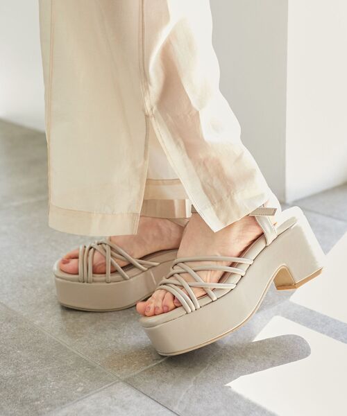 ボリュームソールで盛れるのに大人っぽい!クロスデザインサンダル。 ■デザイン しっかりストームがあるので歩きやすくスタイルアップも叶います。 インソールにはクッションを敷き詰めふかふかの歩き心地に。 華奢なクロスデザインにすることで厚底なのに大人っぽい足元を演出します。 ■サイズ感 甲高・甲幅のある方にも履いていただきやすいサイズ感。 ヒールの高低さもほぼなく疲れ知らずの歩きやすさ。 ■スタイリング 程よいボリューム感があるのでパンツともスカートとも合わせやすく、幅広いスタイリングにマッチします。 春夏コーデのポイントになる旬なサンダルです。 ■商品のお気に入り登録 再入荷通知やのこりわずか、お得なプライスダウンの情報も受け取ることができます。 ぜひご登録ください◎