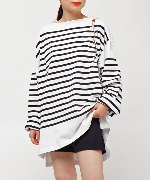 【2023SS】昨シーズンも人気のアイテム、JOHNBULL オーバーサイズバスク Tシャツが再入荷!今シーズンのJOHNBULLは袖丈を若干短く調整し、オーバーサイズ感を楽しみつつもより着やすくデザインされています。1枚で着たときには、体の泳ぐオーバーサイズが華奢なシルエットで見せてくれる効果が期待できるのもうれしいポイント!リラックスした雰囲気でスタイリングできるのでオススメです。*********************透け感:なし裏地:なし伸縮性:なし光沢感:なし生地の厚さ:普通**********************【スタッフ着用コメント】年齢:30代後半/身長:164cm/体型:普通/普段サイズ:M/着用サイズ:フリーサイズ感:かなり余裕のあるオーバーサイズ。着丈はヒップ下まで、袖は指先までの長さです。素材感:Tシャツよりは地厚、一般的なバスクシャツの生地感です。着心地:リラックスした楽な着心地。袖が長いのでまくる必要があります。**********************店舗パートナーがInstagramにてスタイリングを紹介しています!@atk_aps@aya.is__ap@aps_i0829@ap_haru_【JOHNBULL/ジョンブル】岡山県倉敷市を拠点とするジーンズブランド。1952年に創業、1963年に株式会社として設立。テーマはワーク服。ワークをルーツに50年の歴史を持つジョンブルが「現代(いま)を生きる」という、一番厄介で一番魅力的な労働のために造る服。気負わず着られて、今を生き生きと楽しむ為の作業服になりえる服。今の気分を反映しつつ、時が経っても色あせないラインナップで古着としても価値が出る服を創り続ける。ワークというとイメージする汗と油にまみれた世界だけではなく、音楽や芸術を愛し、創作していくこともJOHNBULLは労働(ワーク)と考える。夢を追い求めるエネルギッシュな人や、オンボロの車でもオシャレに乗りこなし、自分のスタイルを表現できる人。服だけでなく音楽や芸術を愛し、カルチャーを楽しめる人。彼らが自分を表現するツールとして愛される服。そんな労働着でありたいと考える。※取り扱いについては、商品についている取扱表示にてご確認下さい。※照明の関係により、実際よりも色味が違って見える場合があります。またパソコン・スマートフォンなどの環境により、若干製品と画像のカラーが異なる場合もございます。※商品の色味は、商品アップ画像をご参照ください。※メーカー型番:ベッチュウ※カラーについて弊社販売カラー名:メーカーカラー名ブラック(001):BLACKホワイト(010):WHITE※サイズについて弊社販売サイズ名:メーカーサイズ名フリー(999):F本体:洗濯機洗い(弱)