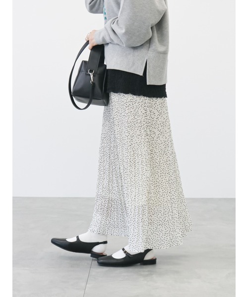 ランダムドット柄のデザインが大人びた風合いを演出するスカート。消しプリーツ加工を施し、ふんわりとしたシルエットを楽しめます。トップスの裾をインして、ウエストラインを際立たせたスタイリングがおすすめ◎カラーによって異なる雰囲気を味わえるアイテムです。 ※商品画像は、撮影環境やお客様のご利用のPC・スマートフォンのモニター環境などにより実物と色味に差異がある場合がございます。【その他採寸】F ウエスト:[ゴム仕様]62cm