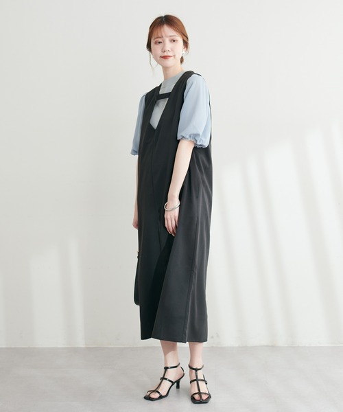 【2023SS natural couture】さらっとした素材感の大人な2WAYジャンスカ■DesignVネックのデザインがシャープな印象に見せるジャンスカ。ゆとりのあるシルエットながらも深めのVネックが上品な仕上がりに。胸元のベルトは取り外し可能なので2WAYでお楽しみ頂けます。後ろにスリットが入っているので歩きやすい、両サイドにポケットがあると、嬉しいポイントが詰まったアイテムです。■Stylingインナー次第できれいめからカジュアルにもなれます。ジャケットを羽織ることでさらに上品なスタイリングが仕上がります。シンプルなインナーではベルトを付けて華やかに、デザインのあるインナーやネックレスを付けるときはベルト外すと綺麗にお召頂けます。■Fabricしっかりとしながらも柔らかくさらっとした生地感。胸元のベルトは両ボタンで取り外し可能です。カーキ、グレー、ブラックの定番カラーに加え、春らしいパープルのカラーをご用意しております。=========================透け感:なし裏地:あり伸縮性:なし光沢感:なし生地感:さらっとした生地感========================= 【お気に入り登録でお得な情報がいっぱい】・「商品のお気に入り登録」で再入荷通知や、ラスト1点の通知、セール通知をいち早く受け取ることができます。・「ブランドのお気に入り登録」で新商品や再入荷など、お得な情報を受け取ることができます!※店舗の入荷時期は商品によって異なります。店頭の在庫状況につきましては各店舗にてお問い合わせください。※撮影時の光の関係で、画面上の画像と実際のお色とでは若干の色差が生じる可能性がございます。また、ご覧いただいているモニター画面や、お使いのブラウザによっても、お色の違いがございますことをあらかじめご了承くださいませ。