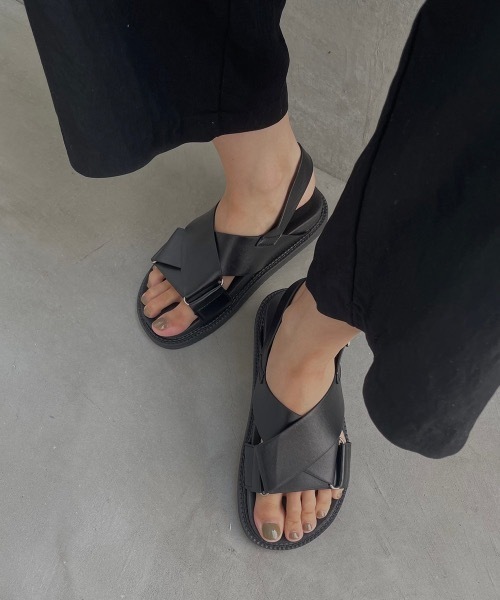 【クロスベルトチャンキーサンダル】太めのベルトデザインがコーデのアクセントになるサンダル。安定感のある厚底のソールなので、歩きやすいことはもちろんスタイルアップも叶います。調節可能なベルトが足をしっかりとホールドしてくれるので、長時間歩いてもストレスフリーな履き心地です。デイリー使いはもちろん、アウトドアなど様々なシーンにお勧めなアイテムです。※サイズは普段お召し頂いているサイズがお勧めです。