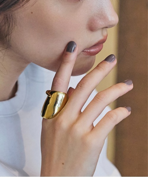 幸福をもたらす木と言われているベンジャミンバロックの葉をイメージした印象的なデザインのリング。幅広のボリュームリングは指が動かしにくく疲れる印象を持たれますが、部分的にボリューム感を出し、細い部分を作ったことで指の可動がしやすいデザインに調整して作っていることがポイントです。人差し指に付ける時は指の付け根に沿うようにぐっと下げて付けて頂くのも素敵です。サイズ補足高さ 3cm▪️point・肌に優しいニッケルフリーメッキ・日本製・巾着付き▪️detail・肌に優しいニッケルフリーメッキ金属アレルギーの方にもお楽しみいただけるよう、アレルギーの原因とされるニッケルをほぼ含まずメッキ処理を施したアクセサリーです。※ 必ずしもアレルギー反応が出ないということではございませんので、お肌に敏感な方は慎重にご購入下さいませ。loni のアイテムはsilver925 or 18KGメッキを使用しています。メッキ製品にはどれも寿命があり、使用環境(アルコールや手洗いなど)によってメッキが剥げやすくなります。使用後は柔らかい布で汗や水分を拭き取り、空気に触れて酸化しないようジッパー付ポリ袋や付属の巾着に入れて保管することで美しい状態を長く楽しめます。▪️ loni とはおだやかに、力強く、そして可憐に生きる植物をテーマに、自然と目を惹くアクセリーを展開します。ブランド名にもなったloniceraの花言葉は絆。loniのアクセサリーをつけておしゃれをすることで人と人との繋がりや、自分自身との絆を深めてほしいという想いを込めています。 “ お気に入り登録 “ でお得な情報が! ・「 商品のお気に入り登録 」で再入荷通知や、ラスト1点のお知らせ、セールのお知らせも受け取ることができます。・「 ブランドのお気に入り登録 」で新商品や再入荷など、お得な情報を受け取ることができます。ぜひご登録ください◎※太陽光や消毒液は変色の原因となりますので、ご使用の際のご注意と、直射日光の当たらない場所での保管をお願い致します。※ご注文いただいた予約商品のお届け時期のご確認は、注文履歴ページよりご確認頂けます。※ご覧のモニター環境により、画像の色味と多少異なる場合がございます。※ご注文いただいた予約商品のお届け時期の確認は、注文履歴ページより行えます。