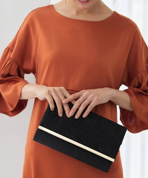 レースデザインが女性らしいクラッチバッグフラップ部分のケミカルレースが女性らしい印象のクラッチバッグ。メタリックな輝きのゴールドラインプレートが、上品なアクセントを添えてくれます。長さの違う2種類のチェーンストラップ付きで、シーンに合わせて3wayで使えるのも嬉しいポイントです。 ▼キーワード▼ #パーティー #結婚式 #2次会 #セレモニー #入学式 #卒業式 #デート #ミニバッグ #オケージョン #卒入園式 #入園式 #卒園式 ▼ATTENTION▼ ※摩擦や汗、雨等で濡れた場合、他の衣料に色移りする場合がございますのでご注意下さい。 ※撮影時のライティング、PCやスマートフォンの環境により写真の色味が実際の商品と異なって見える場合がございます。ご了承の上お買い求め下さいませ。 ※モデル着用画像は実際の色と多少異なる場合がございますのでマネキン画像をご確認ください。 ※製造過程や素材により染料等の臭いが強い場合がございます。臭いが気になる場合は一度陰干しされてからご使用下さい。 ※着用衣装はすべて参考商品です。 ―――――――――― 《お買い物をもっと楽しむために!》 ■商品のお気に入り登録 お気に入りの商品やカラーを登録していただくと 値下げ・在庫1点・完売後の再入荷などの通知を随時受け取ることができます。 ■ブランドのお気に入り登録 新商品の発売や再入荷、セール、クーポン配布など EditSheenのお得な情報を受け取ることができます。