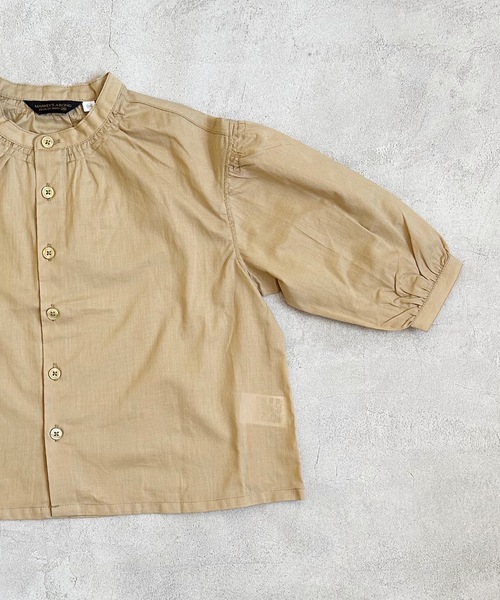 【A BOND】優しい雰囲気のカラーギャザーシャツ♪バンドカラーなので、首元がすっきり見えて上品が印象を与えてくれます。また、丸い形状なので、女の子らしい雰囲気を演出することができます。首元と肩のギャザーが、ふんわりしたシルエットを生み出します♪袖部分がゆったりしており裾にかけて広がっているので、ゆとりのあるシルエットになります。透け感のある薄い生地感なので、サラッと羽織りやすい!ベーシックなカラー2色と、春夏らしい明るいカラー2色の全4色展開です。■大人サイズもご用意しています[品番:0030531017]