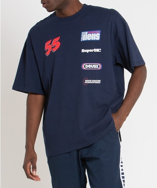 "80年代、90年代のヴィンテージモトクロスからインスピレーションを受け、現代的なオーバーサイズシルエットにデザインされた""TRACKSIDE""。スポーツテイスト溢れるレーシングTシャツをDEUSデザインチームが現代風にアレンジ。リサイクルコットンを使用したヘビーウェイト生地に、DEUSアートワークを施したレーシングチームTシャツ。"
