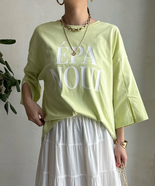 ■2023 SPRING & SUMMER ITEM■春夏の大活躍アイテムがトレンドのスリットスリーブデザインで新登場!フロントのロゴがコーディネートのワンポイントになるロゴTEE。春先から着回していただきやすい七分袖に加え、袖にはスリットが入っており、これまでのカットソーとは異なるこなれた印象に。身頃が広めのゆったりサイズで着心地が良く、今年らしくルーズな印象で着られるのもポイントです。デニムやカーゴパンツと合わせたカジュアルスタイルや、チュールスカートやプリーツスカートを合わせた甘くなり過ぎないフェミニンスタイルにも活躍するアイテムですよ。- POINT -・フロントのロゴがコーディネートのワンポイントに・袖スリットで腕スッキリ見え〇・ロゴ×スリットでこなれ感ばっちり--------------------------------洗濯:洗濯機洗い可(弱)※洗濯ネット使用透け感: ホワイトのみややあり裏地: なし光沢感:なし--------------------------------【 ♡ をクリックでお得な情報をお知らせいたします 】〈 商品のお気に入り登録 〉 お気に入りアイテムのお値下げ・再入荷・在庫ラスト1点など通知を受けることができます。〈 ブランドのお気に入り登録 〉DOUDOUの新商品や再入荷、セール、クーポン配布などお得な情報を受けることができます。--------------------------------------※ 生産の都合上、お届け時期が前後する場合がございます。※ 掲載画像の商品の色味は、 撮影場所や光の当たり具合などにより色味が異なって見える場合がございます。 また、お客様のお使いのPC・スマートフォン等のモニター環境などにより色味が異なって見える場合がございます。予めご了承の上ご注文ください。 ※ 着用、お取り扱いの際は、商品についている品質表示とアテンションタグを必ずご確認下さい。