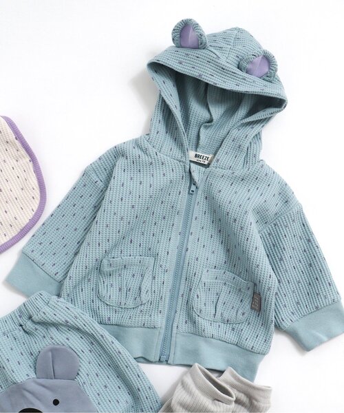 【どうぶつさん なりきりアイテム】 子ども服ならではのなりきりアイテムは写真映えするので思わず着せたくなっちゃう♪ 耳付きのパーカーはギフトでも人気のアイテム☆ ドット柄のやわらかいワッフル生地を使っており 立体的なポケットが付いているかわいいパーカーです。 同色のなりきりパンツと合わせてチェックしてください! 【 BREEZE -ブリーズ- 】 WEAR A HAPPY SMILE こだわりと遊び心のつまった、着ると「笑顔」のWEAR、「着たい」がいっぱいのSHOP そんなHAPPY SMILEに出会える場所がBREEZE