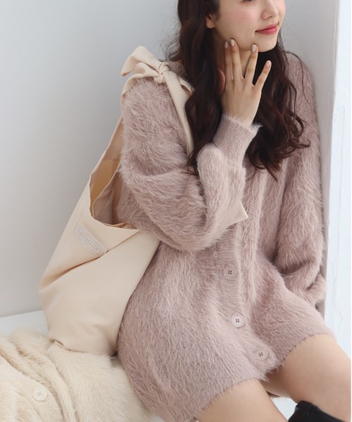 艶っと目を惹くシェルボタンが可愛いシャギーニットミニワンピース。肌触りが良くお袖のたぽっと感があざといニットだございます♡ミニワンピースとしても、ルーズニットとしても、ボタンを開けてカーディガンとしてもお召いただける、着回し力抜群のアイテムです♡