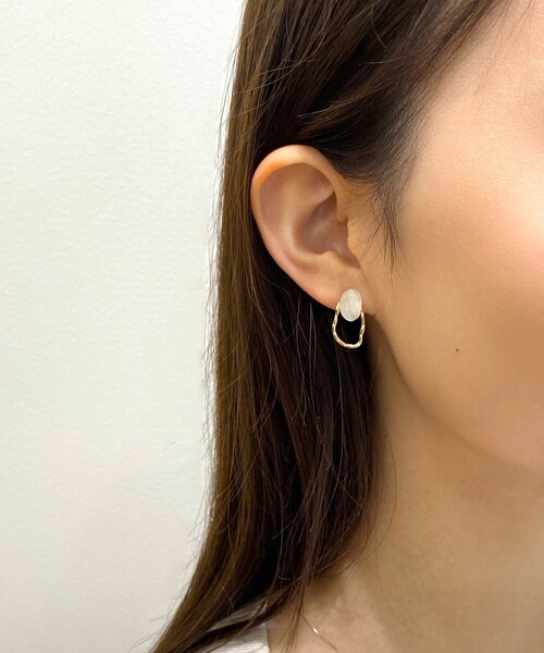 そっとアクセントをプラスするピアス 【デザイン】 ニュアンスある半透明の樹脂パーツが春夏らしいピアス。 組み合わさったメタルは表面の凹凸感があり、優しく煌めきます。 さりげなくアクセントをプラスするアイテムとしておすすめです。 店舗へのお問い合わせ商品番号:C71-36526 ●製品寸法: 00:全長1.9cm モチーフH2cm モチーフW1cm 備考: