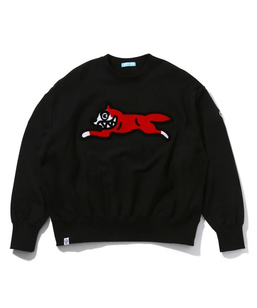 裏地に肌触りの良いパイル状に編まれた生地を採用したSWEAT SHIRT。フロントに大きくサガラ刺繍で贅沢に施された、〈ICECREAM〉の「ランニングドック」が印象的な1枚。左袖の「フラッグロゴ」のラバーパッチがアクセントに。