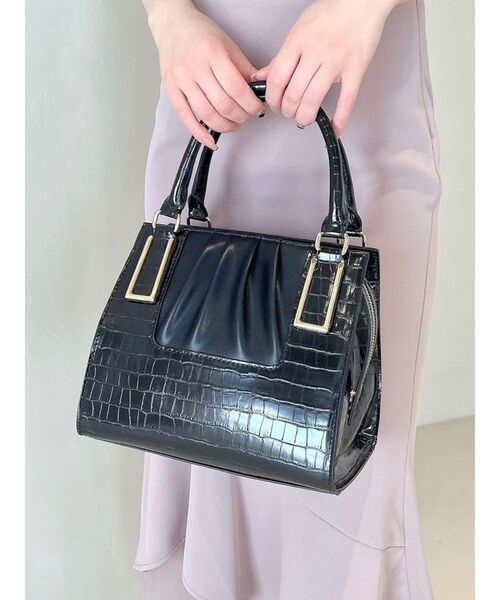 毎シーズン人気のハンドバッグが新デザインで登場!▽デザイン▽フロントには柔らかいPUを使用してギャザーデザインを施しワンポイントに♪ベース生地は均等な間隔のクロコ生地を使用しメリハリのあるデザインバッグに仕上げました。定番のスクエア型シルエットのバッグなので容量もたくさん入る嬉しいバッグ。コーデに合わせやすく、大人な印象に仕上がります。シーズン問わず使える万能アイテムです。