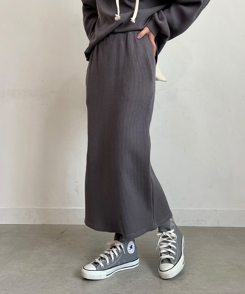 丈が選べるバックスリットワッフルスカート。 柔らかく伸びのある生地感で動きやすも抜群。 後ろにはスリット入りで足さばきもよく、女性らしい抜け感も。 ウエストはゴム仕様でリラックス感のある着心地。ポケット付きなのも嬉しいポイント♪ ヒップが隠れるように、オーバーサイズアイテムを合わせたり、前だけタックインして着こなすと体型カバーもうまくでき、スタイルアップも◎ お家でも外でも、様々なシーンで活躍するトレンドに左右されない1着です。 丈が選べるので、小柄さんから高身長さんまで幅広い身長の方におすすめ! 別売りで同じ素材のトップスを展開しておりますのでセットアップとしても御着用いただけます。 ■DETAIL■ サイズ:FREE 伸縮性:あり 透け感:あり 裏地:なし ■お気に入り登録でお得情報ゲット!■ ・商品のお気に入り登録 完売カラーの再入荷や、ラスト1点の時、セールになった時などお知らせします。 ・ ブランドのお気に入り登録 新商品や再入荷、セール情報など、いち早くお得な情報を受け取ることができます。 ぜひご登録よろしくお願いします。 【PICHI ピイチ】 『背伸びをしない、自由で自分らしい服』をテーマに 「自分の”好き”を諦めない、毎日を楽しむ女性へ」 家でも外でも頑張る女性へ向けた、自由で自分らしい リラックス感ある大人カジュアルなファッションアイテムを提案します。