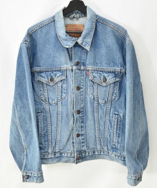 -素材の特徴-・硬さの和らいだデニム生地 -デザインの特徴- ・90~00s Levi's デニムジャケット ・ブルーデニム ・フロントボタン ・ハンドポケットのある4つポケットタイプ ・レッドタブ ・表記Lサイズ -デザインの特徴- Levi's、デニムジャケット。 程よい色落ちで使い勝手の良い色味。 流行り廃りがなく、長くお使いいただけるアイテムです。 -状態- 着用感,色褪せ,スレ ーーーーーーーーーーーーーーーーーーーーーーーーーーーーーー こちらはヴィンテージ商品のため1点ものです。 交換・修理はいたしかねます。 ヴィンテージ商品につき、どちらの商品にもシミ・ダメージ・使用感が多少ございます。 このようなヴィンテージ商品の性質を十分ご理解いただいた上で、ご注文くださいますようお願いいたします。 商品状態につきましては詳細にお伝えするよう努めておりますが、細かな点の表記には限りがございます。 画像につきましても、実商品の色味に近しいものを掲載するよう心がけておりますが屋内での撮影のため、多少の誤差が生じる場合がございます。 どうかご理解いただけますようお願いいたします。 ーーーーーーーーーーーーーーーーーーーーーーーーーーーーーー