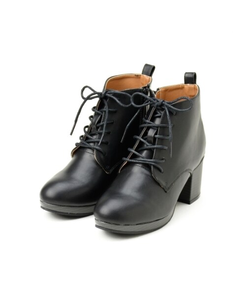 シンプルなディティールですっきりとした印象でどのコーデにも合わせやすい編み上げブーティー。つま先は丸みがあるのでクールになりすぎず、高めのプラットフォームで脚をきれいに見せ太めのヒールは安定感もあり歩きやすさ抜群♪べーシックなカラーは合わせやすく、一足は持っておきたい優秀アイテムです☆*摩擦や水濡れによる色落ち・色移りにご注意下さい。