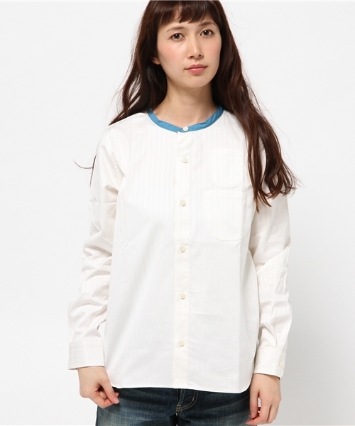 バンドカラーの切り替えとストライプのコントラストな配色がかわいいシャツは、1枚で存在感のある仕上がりに。 キックバックのある素材を使用し、着心地も抜群です。胸元のダブルポケットもこだわりのポイントのひとつ。 羽織にしても良し、中にタートルネックのトップスをレイヤードするのも今季おすすめのスタイルです。 店舗へお問い合わせの際は下記品番をお伝えください。 品番:13-11-0265-718