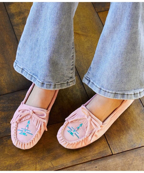 イーグルオルテガ刺繍で個性的なアクセントを効かせたモカシンシューズ。 起毛感のある素材やフリンジとリボンのアクセントが、ほっこりとした可愛らしさを演出。 長時間歩いても疲れにくい軽量な設計で、デイリースタイルの定番になります。 <サイズ> S(22.5cm~23cm) M(23cm~23.5cm) L(23.5cm~24cm) LL(24.5cm) ※生地のデザイン上、実際の商品と画像とで柄の配置が異なる場合がございます。予めご了承ください。 ※モデル着用画像は光の当たり具合で色味が違って見える場合がございます。 ※商品の色味の目安は、商品単体の画像をご参照ください。 【お買いものをお楽しみいただく為に!】 ▼商品のお気に入り登録 完売カラーの再入荷通知や、ラスト1点の通知、セールの通知も受け取ることができます。 ▼ブランドのお気に入り登録 新商品や再入荷など、いち早くブランドのお得な情報を受け取ることができます。