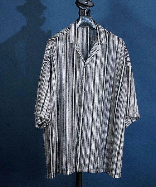 【トレンドのレース編みデザイン】 トレンド感のある透け感のあるレース編み素材。 凹凸感のある素材感でリラックスしたスタイルにもおすすめです。 レディーストレンドであったシアーシャツやレースシャツ等の透け感があるものやメッシュ素材のアイテムが今期はメンズでもかなり人気が出ています。 【定番化した大人気のビッグシルエット!】 ルーズな大人気のビッグシルエットでボリューム感のある、ゆったりとした着こなしが可能◎ ビッグオープンカラーシャツはストレスフリーな着用でリラックス感もあり着心地抜群です! 身幅をゆったりととり肩も落として着用が可能で今っぽさが演出できるトレンド感満載の開襟シャツです。 【シンプルになりがちな夏のスタイルのアクセントになるシャツ】 今回は4色の展開です。黒白グレーのモノトーン調なカラーリングのシャツ,春夏間のあるブルーやグリーンの色味をご用意しております。 派手なパターンとルーズなビッグシルエットが周りの目をひく人気アイテム◎ 夏の定番でもある総柄開襟シャツとオープンカラーシャツは何枚持っていても困らないアイテムです! 柄シャツやアロハシャツのようなプリントデザインとは差別化できるシャツになっています。 半袖ですがビッグシルエットなので袖もやや長袖感のあるルーズシルエットで、長いシーズンで着用していただけます。 シンプルになりがちな春夏のコーデにおすすめなこなれ感を演出できるシャツです。 ゆったりとした身幅やアームホール、ドロップショルダーデザインでルーズに着こなせるオーバーシルエットになっています。 今期トレンドのベストやカーディガンと合わせて重ね着スタイルもいいですし、インナーにシンプルなプリントTシャツやボーダーカットソー、タンクトップなどを合わせてレイヤードスタイルを作るのも◎ ベーシックなデニムやチノパンツ、カーゴパンツやスラックスなどどんなパンツにもハマるアイテムです。 夏場の時期はイージーパンツやハーフ丈パンツに合わせれば夏のコーデも組みやすいです。 【ストレスフリーな着用感】 リラックスシルエットで、トレンド性のあるオーバーサイズスペックのシャツです。 シワにも強いためガシガシ気にせず着ていただけるシャツです。 メンズレディース関係なく着れるユニセックスデザインなのでシェアもおすすめ◎ 定番でサンダルを合わせてもよし、コーディネート画像のようにワイドパンツやワイドデニムパンツで今っぽくコーデするのも◎ 脱ぎ着しやすいドロップショルダーのロングシャツは今の時期にぴったりです! モードなグラフィックシャツもございますので、テーラードジャケットインナーに外しでオープンカラーシャツを取り入れても面白いです。 ビッグカラーシャツ、総柄シャツは今期もトレンドですので是非◎