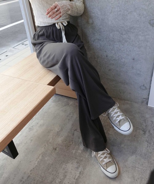 リラクシーなシルエットがおしゃれなフレアパンツカジュアルにも、綺麗めにも合わせやすく、オンオフどちらにも着こなせるアイテム。定番のブラック、チャコールグレー、アイボリーとグレージュ、ライム、ピンクの今季トレンドの淡めなカラーでマストバイなアイテム。サイズはM,L,XLとご用意。チュニック丈デザインのトップスでも、ミニ丈トップスとも合わせやすい。ボトムインしてもアウトして着用してもまとまりの良いシルエット柔らかい生地で着心地の良い素材。緩やかに広がりのあるフレアデザインで美脚効果も。お手入れもしやすいのでデイリーなワードローブに加えたい1枚です。▽生地感透け感:あり 〇〇〇〇● なし生地の厚さ:厚い 〇〇●〇〇 薄い裏地:なし伸縮性:あり◆商品のお気に入り登録【お気に入りに登録】を是非ご活用ください。 再入荷の通知や、ラスト1点の通知、セールの通知がいち早く届きます。◆ブランドのお気に入り登録新商品や再入荷など、いち早くブランドのお得情報が届きます。◆ATTENTION◆※取り扱いについては、商品についている品質表示でご確認ください。※出来る限り忠実に再現するよう務めておりますが、 ディスプレイ画面などの環境上、店頭・屋外での撮影画像は、光の当たり具合で色味が違って見える場合が あります。ご了承下さい。※こちらの商品は水や雨に濡れたり、汗による湿気、乾燥状態での摩擦により、薄い色の衣服などに 色移りする可能性がございます。予めご了承いただき、ご使用の際にはご注意くださいますようお願い致します。※平置きでの実寸のため若干の誤差が生じる場合がございます。※生産時期により若干の色ブレやサイズの変動が生じる場合がございます。※また製品加工上、お手元に届く際に匂いが生じる場合がありますが、 ご使用を続けていく事により匂いは軽減されます。※輸送時による、多少の汚れ・シワがある場合がございます。