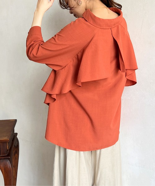 後姿まで可愛い! バックフリルデザインのスキッパーシャツ ■point 麻調合繊の生地を使用した軽い着心地のスキッパーシャツです。 後ヨーク部分がフリルになっているデザインなので、ふんわりと広がるシルエットが大人可愛い印象に仕上げてくれます。 ラグランスリーブが程よくカジュアルさもプラス。絶妙な抜け感が出るので、オンオフ問わず着回せる優秀アイテムです! ■coordinate ワイドパンツやフレアスカートとの相性◎ デザイン性の高いシャツなので、シンプルなコーディネートがオススメです。 ■fabric ポリエステル100% -------------------------------------------------- 裏地:なし 光沢感:なし 伸縮性:なし 生地の厚さ:普通 洗濯方法:洗濯可(弱) -------------------------------------------------- ※商品画像は着用イメージです。 光や角度により、実物と色味が異なる場合がございます。また表示のサイズ感も実物とは若干異なる場合もございますので、ご了承ください。 ※着用、お取り扱いの際は、商品についている品質表示とアテンションタグを必ずご確認ください。 -------------------------------------------------- ♡をクリックでお得な情報をお知らせいたします。 <商品お気に入り登録> お気に入りアイテムのお値下げ・再入荷・在庫ラスト1点など通知を受けることができます。 <ブランドお気に入り登録> Chez toiの新商品・再入荷・SALE・クーポン配布などお得な情報を受けることができます。 -------------------------------------------------- Cheztoi/シェトワ フランス語で「あなたの家」という意味。 自分にまっすぐでそしてしなやかに生きる女性に向けたブランドです。