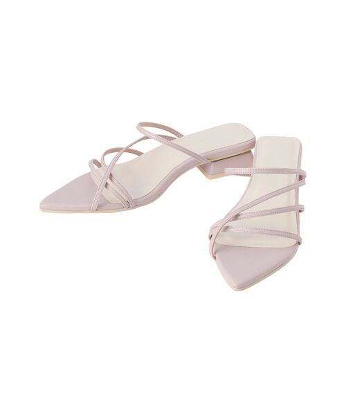 去年から引き続きトレンドのナローストラップをクロスさせた華奢サンダル。 ポインテッドトゥでより足の甲がきれいに見え、上品な印象になります。 ほんの少しだけヒールをつけていて、ヒールにはさりげなくメタルパーツをあしらってアクセントを加えています。 マキシワンピースにもパンツスタイルにも相性抜群のサンダルです。
