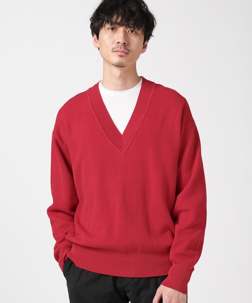 NANO universe(ナノ・ユニバース)LB.03 Section(LB.03 セクション) 『品のある風合いで人気のコットンシルケットシリーズ23SS新作モデル』 上品で光沢感のあるシルケット加工が施された綿を使用した鹿の子Vネックニット。ビッグシルエットでも裾と袖口のリブで絞っており、トレンドライクな着こなしが楽しめます。裏面は配色になったダブルフェイス仕様。程よいふくらみとしっとりとしたやわらかさを持ち、快適な着心地の1着。ドライタッチな肌触りなので、春から肌寒い梅雨の季節までご使用頂ける汎用性の高いアイテムです。 ―DETAIL― ・上品な印象の鹿の子Vネックニット ・裏面は配色になったダブルフェイス仕様 ・春から肌寒い梅雨の季節までご使用頂ける汎用性の高いアイテム ―FABRIC― ・ドライタッチな肌触り ・光沢感のあるシルケット加工が施された綿を使用 ―SERIES― 668-3122213 コットンシルケット鹿の子クルーネックニット 668-3122215 コットンシルケット鹿の子トッパーカーディガン ■取り扱い方法 引っ掛けにご注意ください。洗濯により多少縮むこともありますがあて布をし伸ばし気味にアイロンをかけると目立たなくなります。こちらの商品は水や雨に濡れたり、汗による湿気、乾燥状態での摩擦により、薄い色の衣服などに色移りする可能性がございます。予めご了承いただき、ご使用の際にはご注意くださいますようお願い致します。 ▼商品のお気に入り登録 お気に入りアイテムの再入荷や残り1点の通知を受け取ることができます。 ▼ブランドのお気に入り登録 新作アイテムの入荷や人気アイテムの再入荷、タイムセールやクーポンなど、 いち早くブランドのお得な情報を受け取ることができます。 ※サンプルにて撮影、採寸を行う為、実際にお届けする商品と仕様やサイズが異なる場合がございます。予約時は生産の都合上、お届け予定時期が前後する場合もございますので、予めご了承下さい。