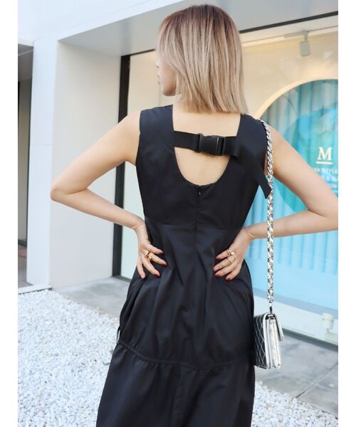 ■デザイン 背中にバックルベルトがついたティアードワンピースです。 レディな印象のティアードワンピースにスポーティーなバックルベルトをつけたことで スポーツMIXのバランスが取れた一枚に。 スカートのボリューム感をお好みで調節していただけます。 ■スタイリング スポーツサンダルやスニーカーと合わせたカジュアルなスタイルがおすすめ。 キャップや小物で夏のトレンドスタイルに◎ -------------- 透け感:なし 生地の厚み:普通 伸縮性:なし -------------- バックルベルトが付いているバックスタイルがEVRISらしいデザインのティアードワンピースです。 スカート部分はドロスト仕様になっており、好みでボリューム感の調節ができます。