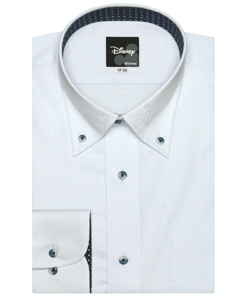 ◇ ディズニーデザインシャツ ◇ 重なりあったダイヤ柄にミッキーのモチーフを組み合わせたシンプルなデザインシャツはデイリー使いに◎ ツートンカラーのボタンはランダムな向きでついているので、シャツによって雰囲気が異なる雰囲気を楽しめる一枚。 【ダイヤ織柄&ミッキー×ミツマル デザイン】 爽やかさと柔らかな印象を併せ持つサックスブルーは、スーツにも合わせやすいビジネスライクなボタンダウン。 【衿型】 ボタンダウンカラー 【体型】 袖の長い・大きいサイズ 【仕様】 カフリンクス使用可能な兼用カフス (アジャストボタン) 中丸カフス 胸ポケット(左胸)付き(ホームベース型) 背タック・背ダーツなし 台衿内側・カフス裏側:別布仕様 前立:裏前立仕様 【BRICK HOUSE by Tokyo Shirts / ブリックハウス バイ トウキョウシャツ】 業界トップ水準を誇るノーアイロンの形態安定加工は自宅で洗濯可能でお手入れ簡単!高度な縫製技術を用いた高付加価値シャツでありながら選ぶことを気軽に楽しめます。ベーシックから多様なデザインまで幅広いバリエーションで豊富なサイズ展開で、ディテールの隅々にまで織り込んで一枚一枚丁寧に仕立てられたシャツです。 ■著作権 (C)Disney